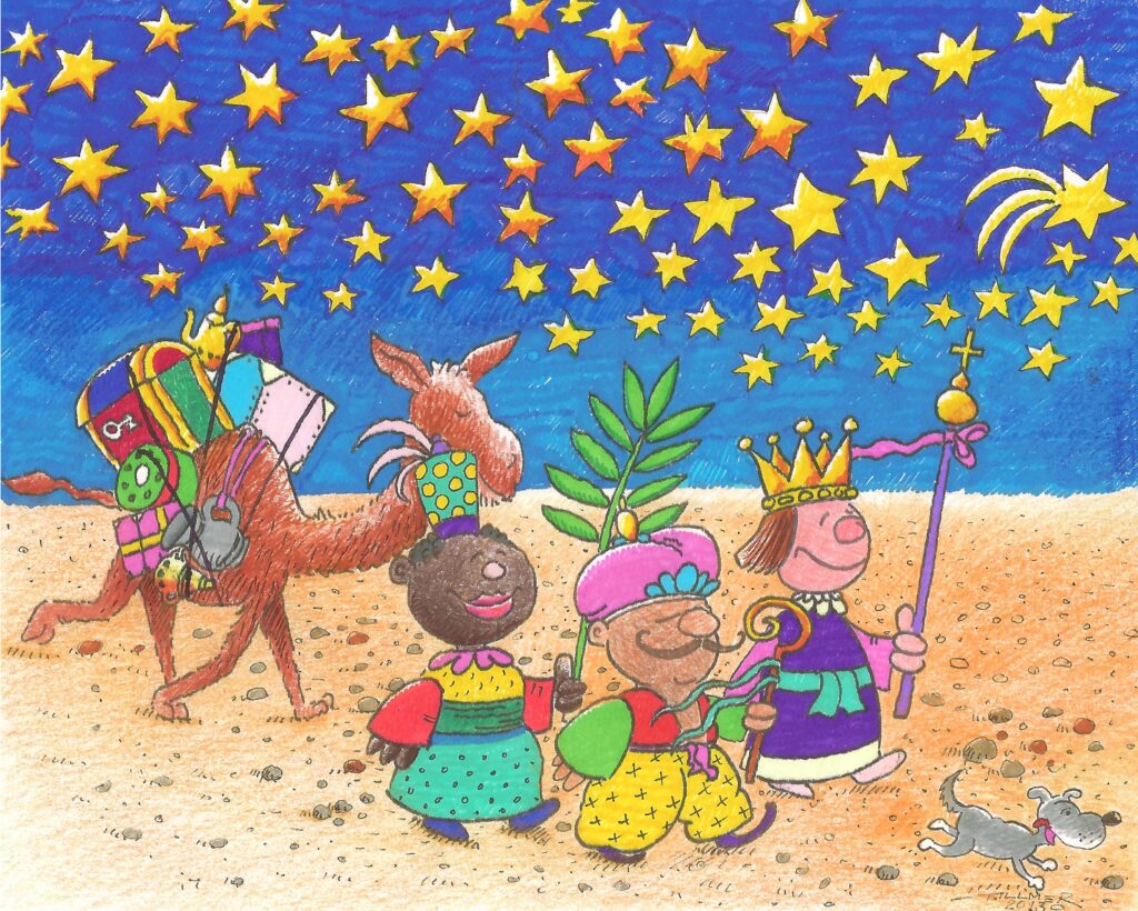 Zeichnung Heilige Drei Könige unter dem Sternenhimmel
