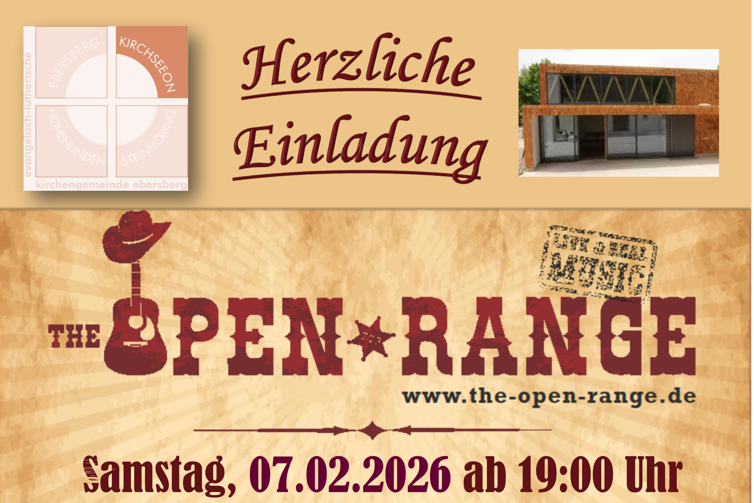 Herzliche Einladung zum Konzert von „The Open Range“ am 7. Februar 2026 ab 19 Uhr im evang. Gemeindehaus in Kirchseeon