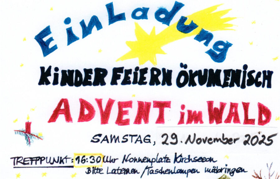 Kinder feiern ökumenisch. Am Samstag, 29. November 2025, um 16.30 Uhr Startpunkt: Nonnenplatz, Kirchseeon Lichter tanzen zwischen den Bäumen. Zu jedem Licht gehören…